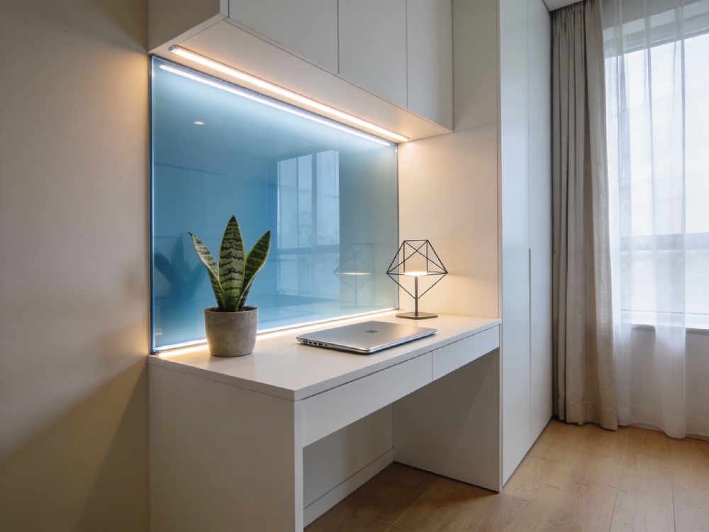 In multipurpose home offices or studios that include sinks or coffee stations, splashbacks help maintain a clean, professional finish. They protect walls from spills while keeping the space visually structured.