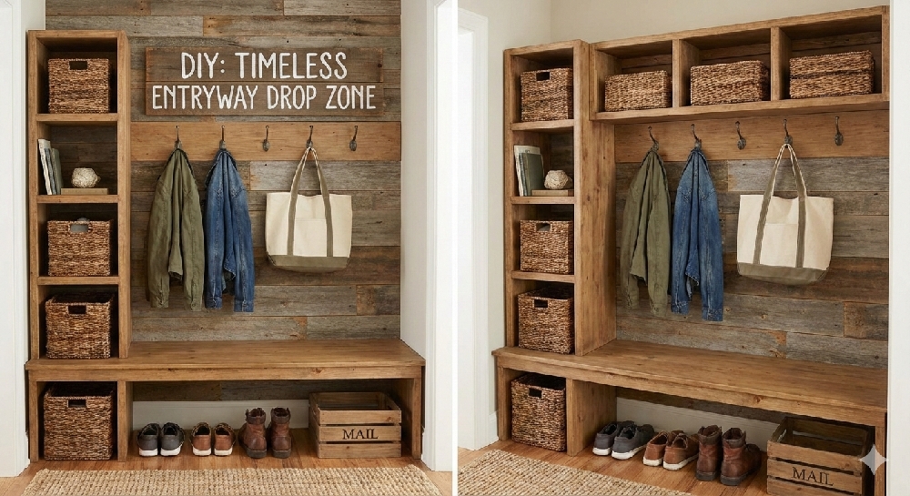 The entryway drop zone is a proven system, not a decorative afterthought. Rooted in how homes have always managed transition spaces, this DIY modernizes a traditional concept without compromising its core purpose. Simple, efficient, and enduring—exactly how good design should operate.