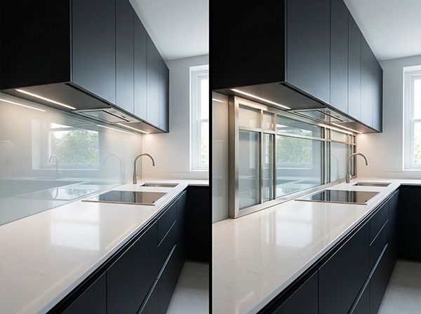 Glass splashbacks do not require a frame to function effectively. The industry standard remains frameless installation, driven by performance, hygiene, and design clarity.