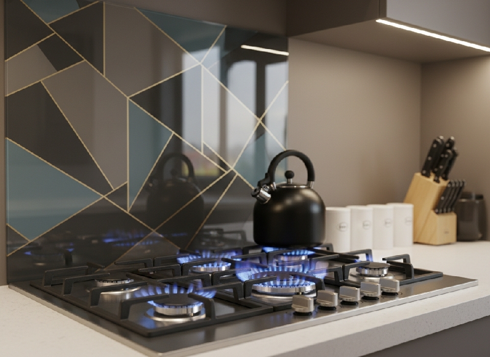 In practical terms, any wall surface behind a gas hob must be capable of handling heat safely. That is where toughened glass, stainless steel, tile, or stone surfaces become strategically important.