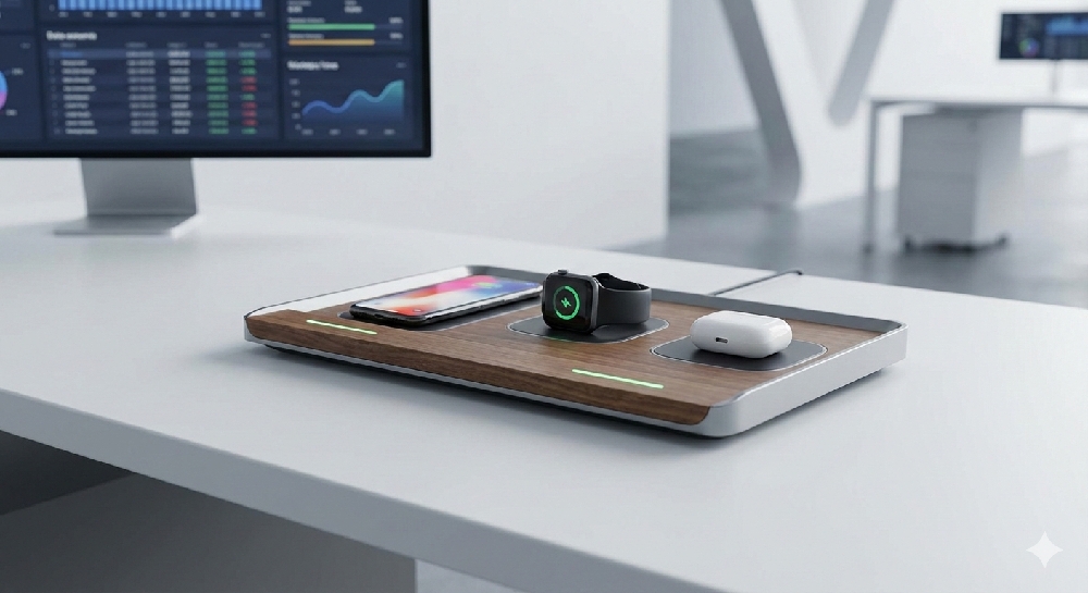 • Add a wireless charging pad beneath the tray for subtle modernization