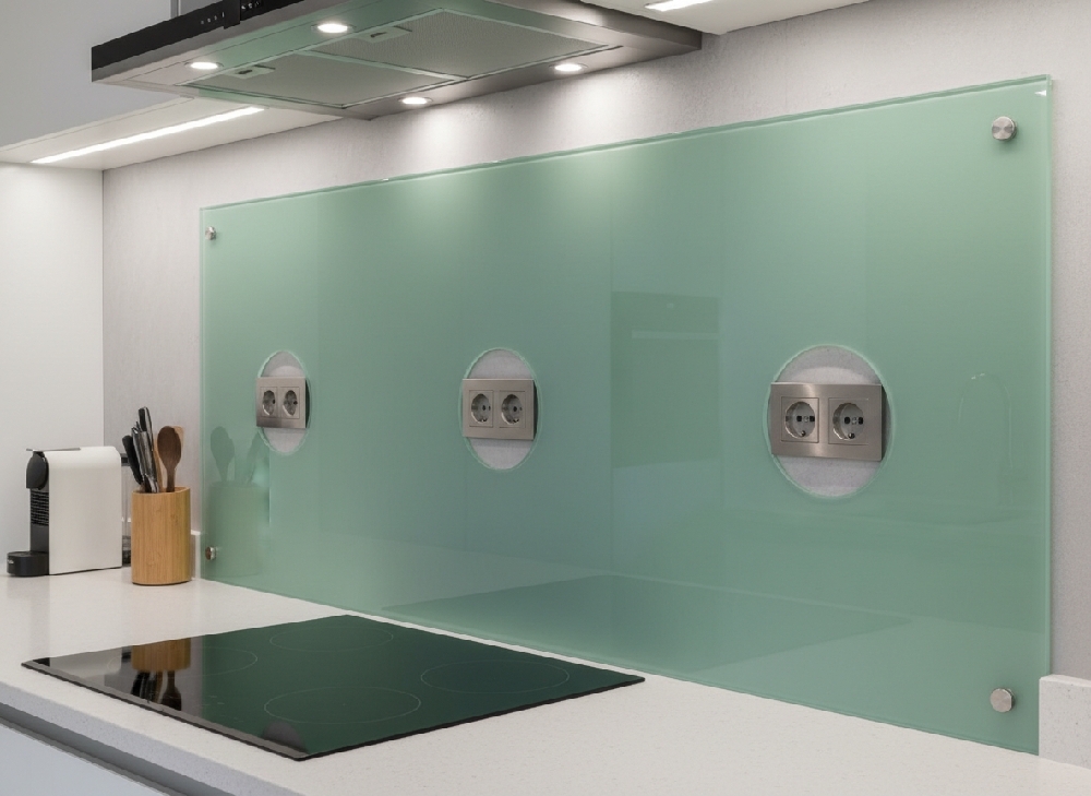 Material suitability – Heat-resistant glass is essential behind cooktops.